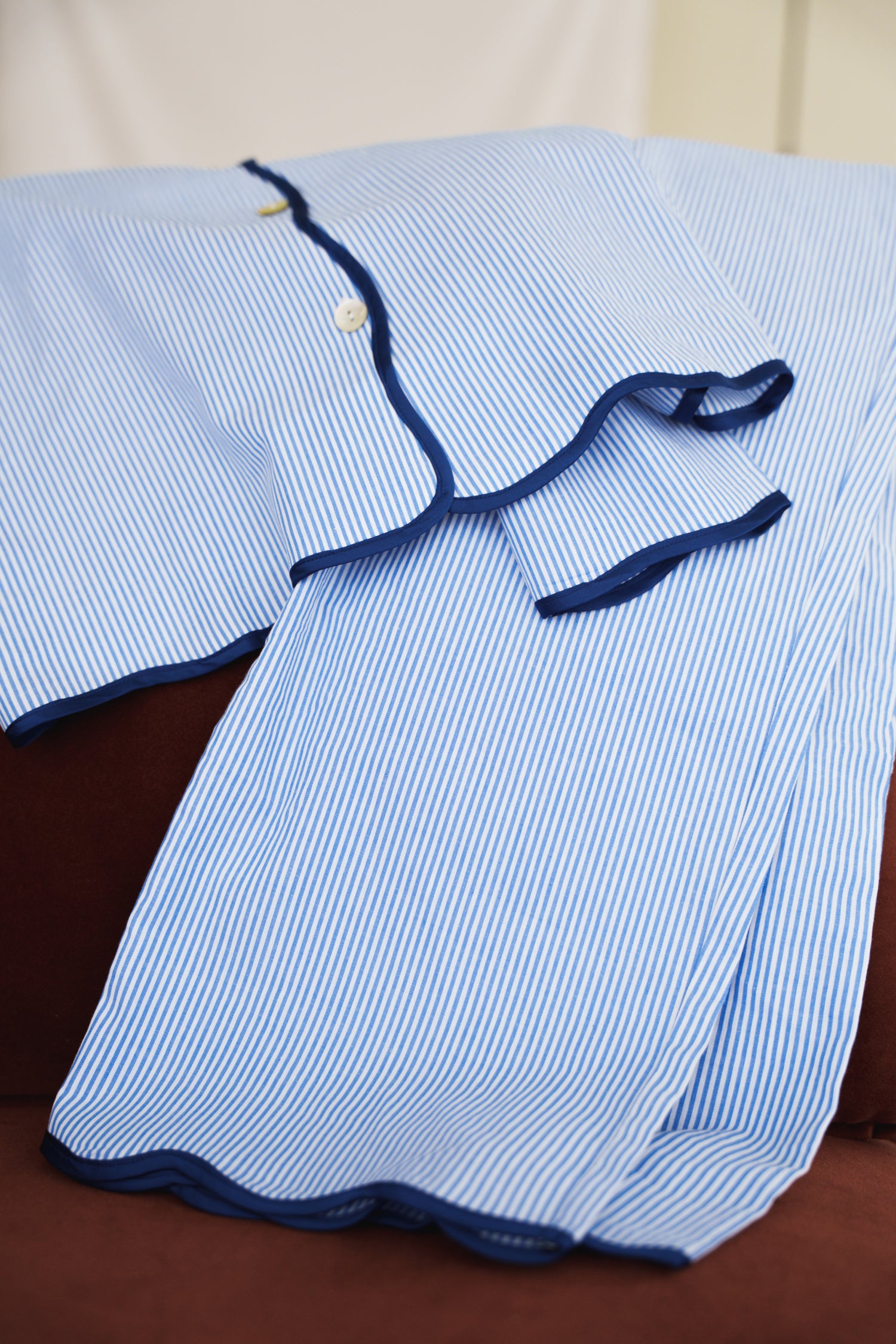 Our pyjamas are made from 100% cotton poplin, a lightweight, breathable fabric woven from natural fibers. We believe sleepwear should feel as good as it looks, so we chose cotton poplin for its softness, durability, and ability to keep you cool and comfortable through the night.